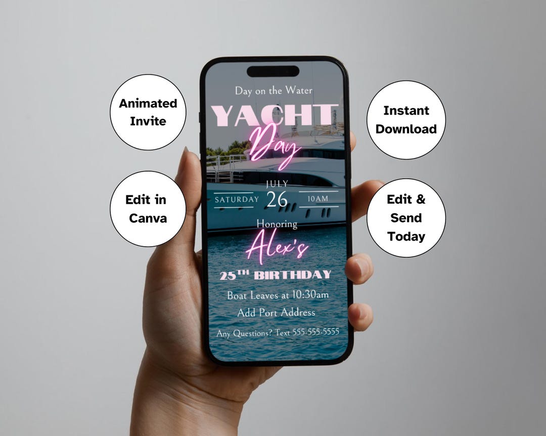 Yacht Party Invitation Template, Digital Boat Party Invite, Animated ...