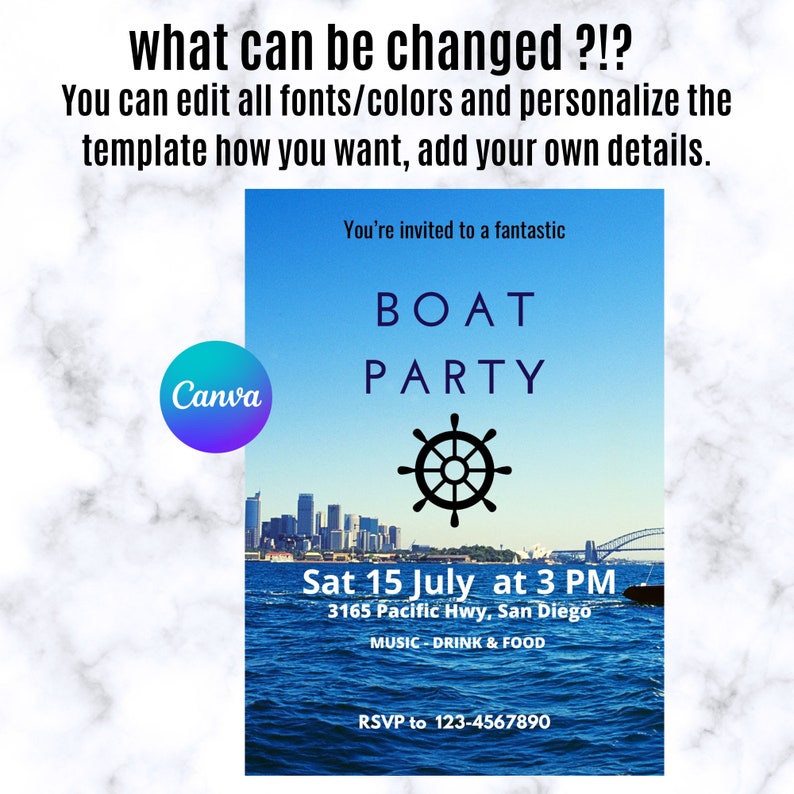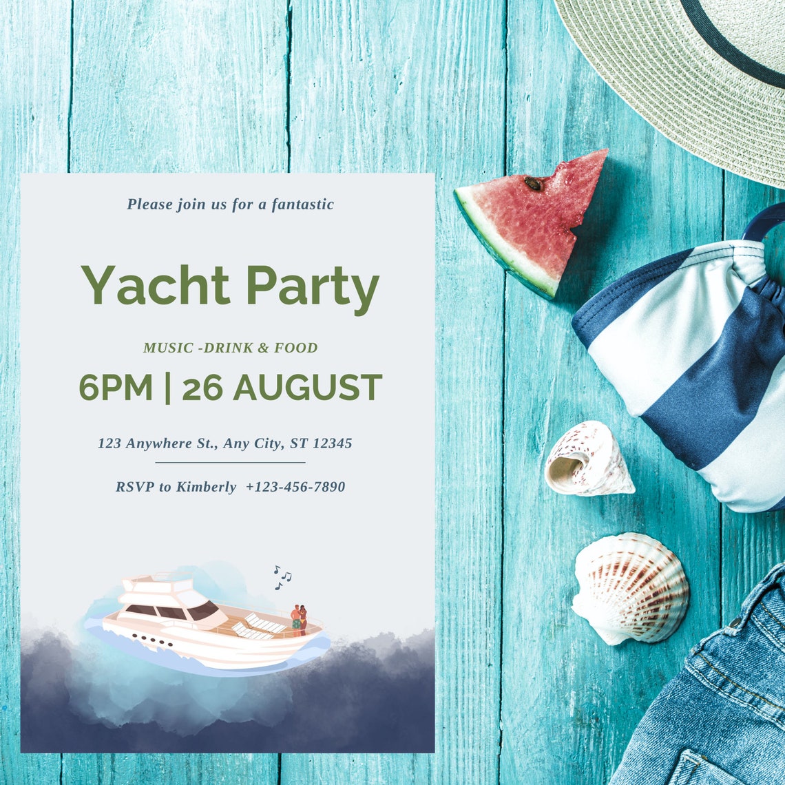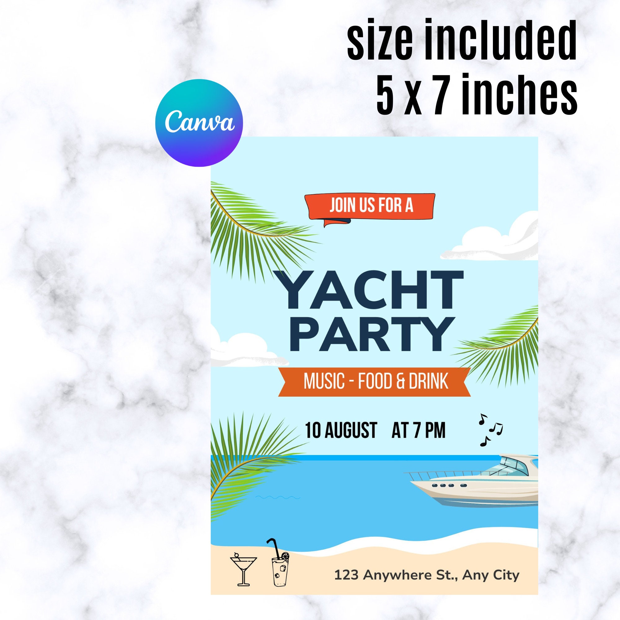 Yacht Invitation, Yacht Party Invite, Boat Party Invitation, Instant ...