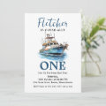 Blue Watercolor Fishing Vessel First Birthday Invitation | Zazzle