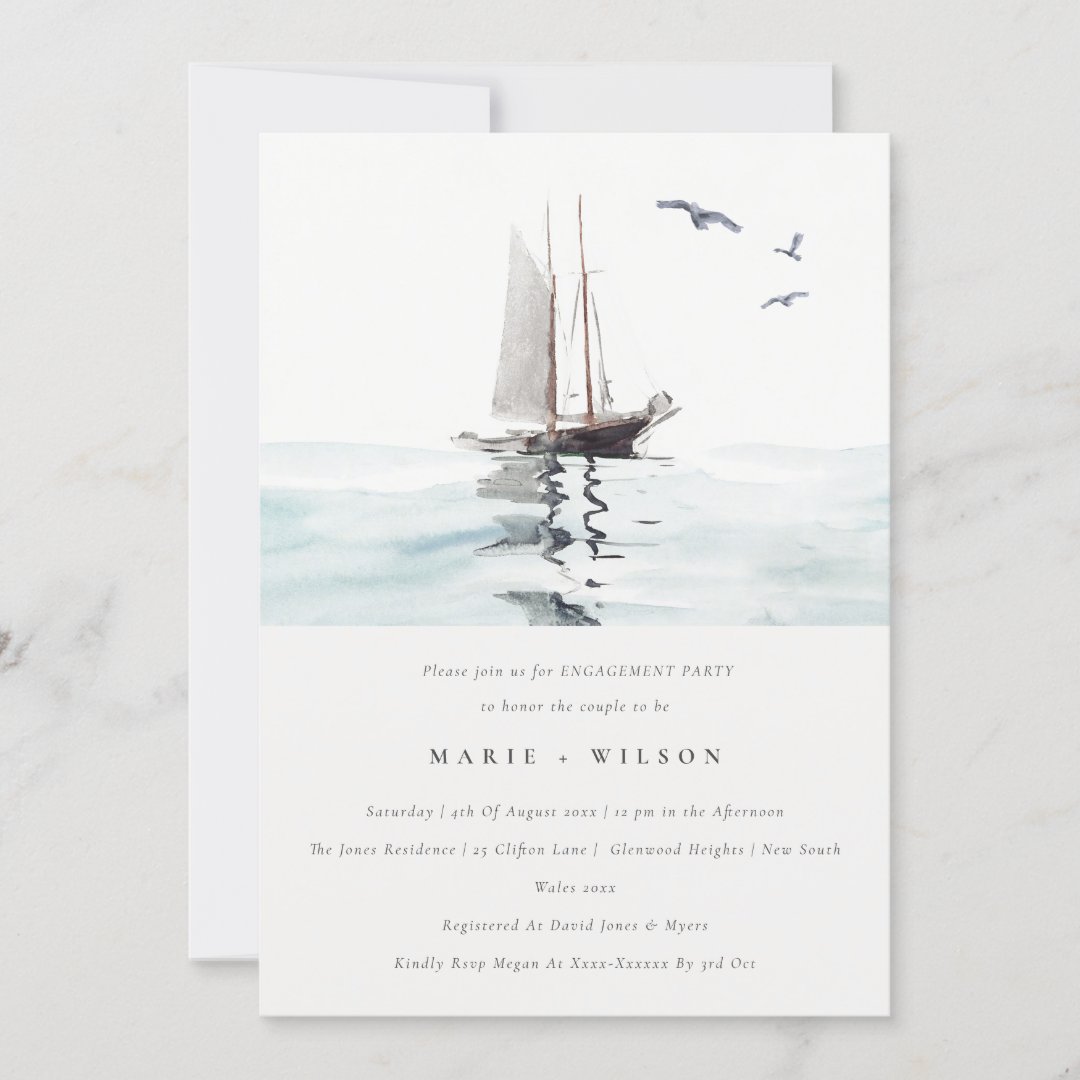 Watercolor Nautical Sailing Yacht Sea Engagement Invitation | Zazzle