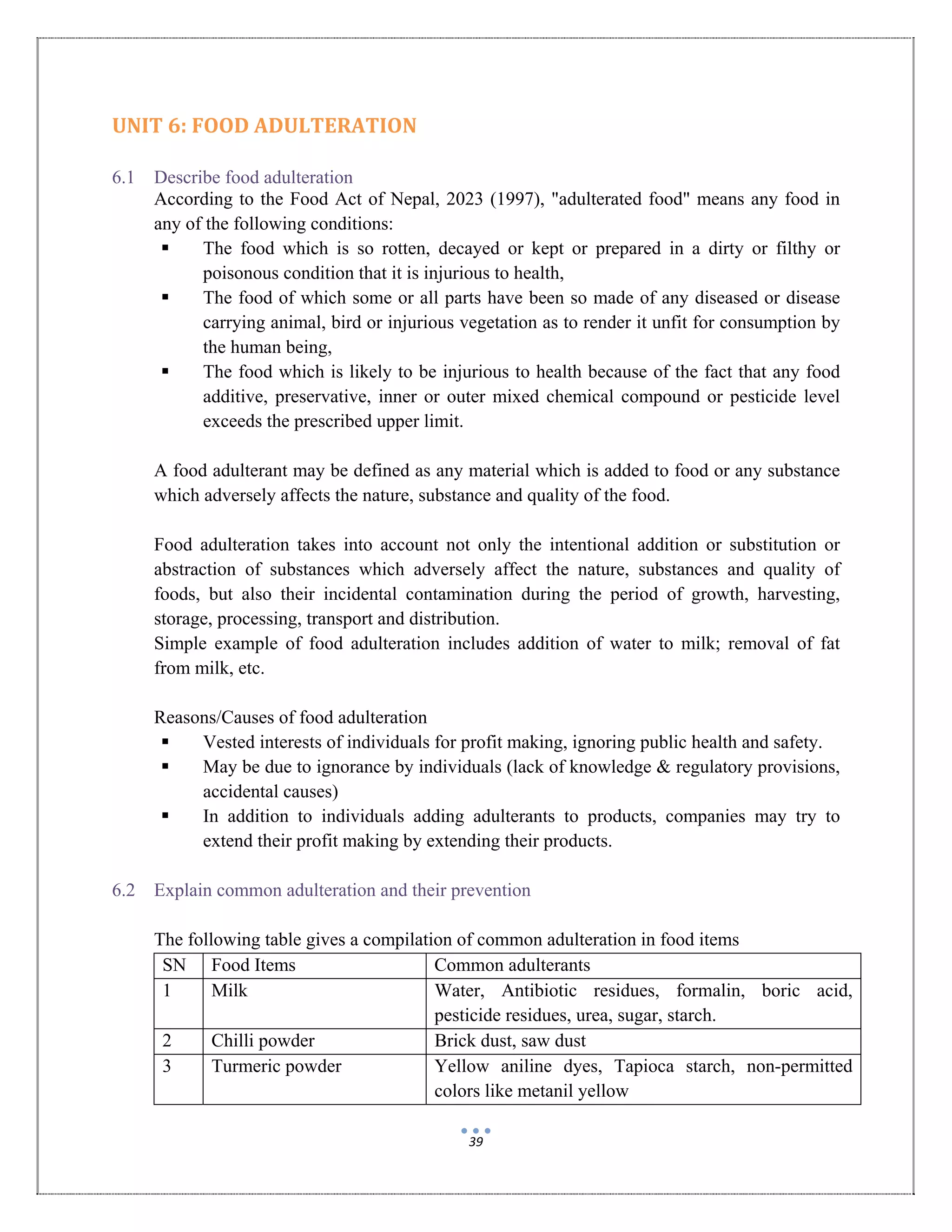 chemistry investigatory project on food adulteration | DOCX