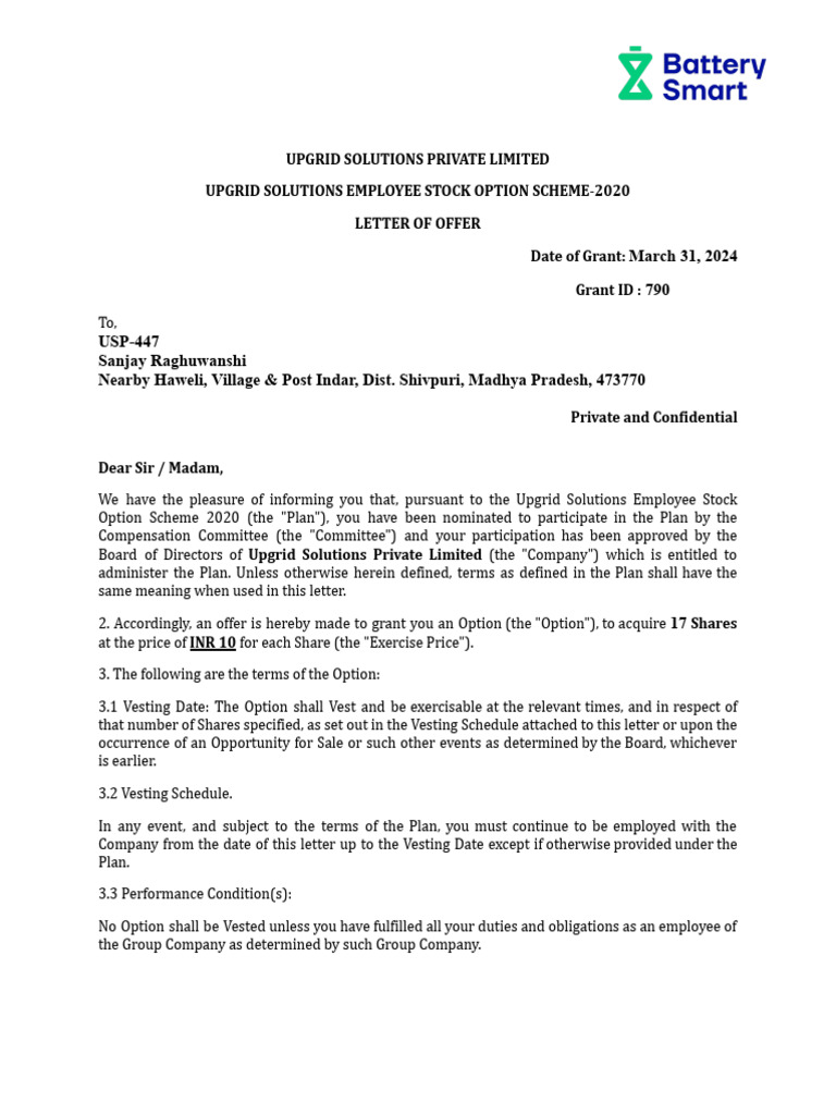 Upgrid Solutions Employee Stock Option Offer | PDF | Vesting | Stocks