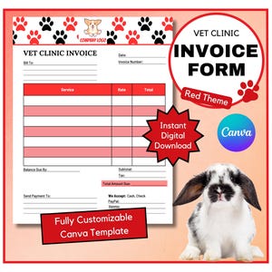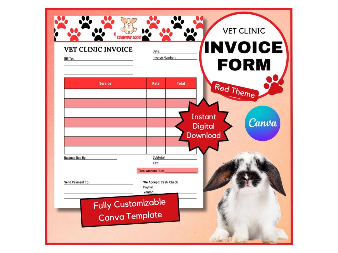 Editable Pet Clinic Invoice Template Veterinary Billing Receipt Canva ...