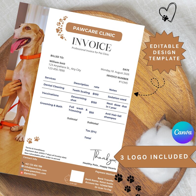 Invoice, Pet Invoice, Veterinary Invoice Template, Editable Pet ...