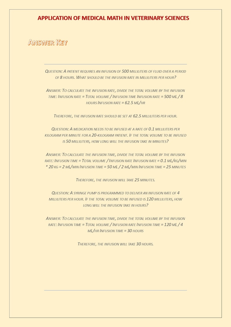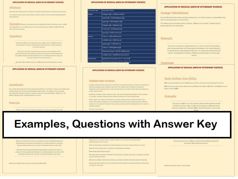 Veterinary Medical Math Answer Key: Practice Worksheet & Conversions ...