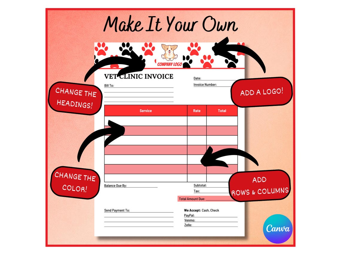 Invoice, Pet Invoice, Veterinary Invoice Template, Editable Pet ...