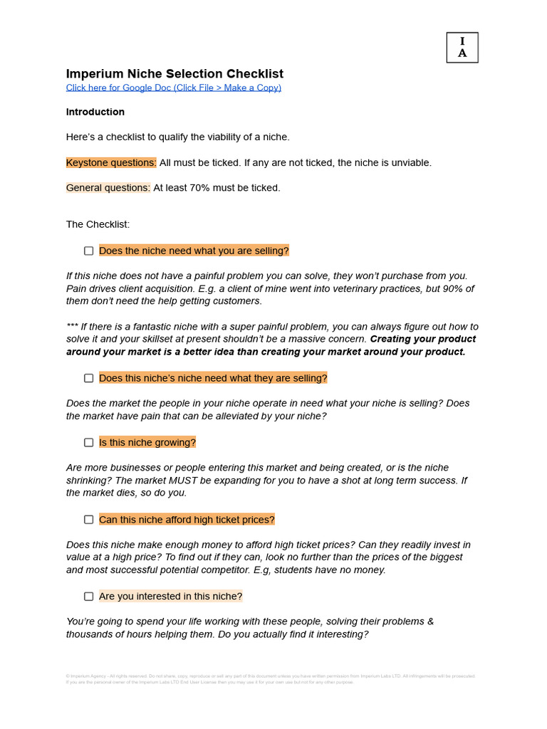 Imperium Niche Viability Checklist | PDF | Copyright Infringement ...