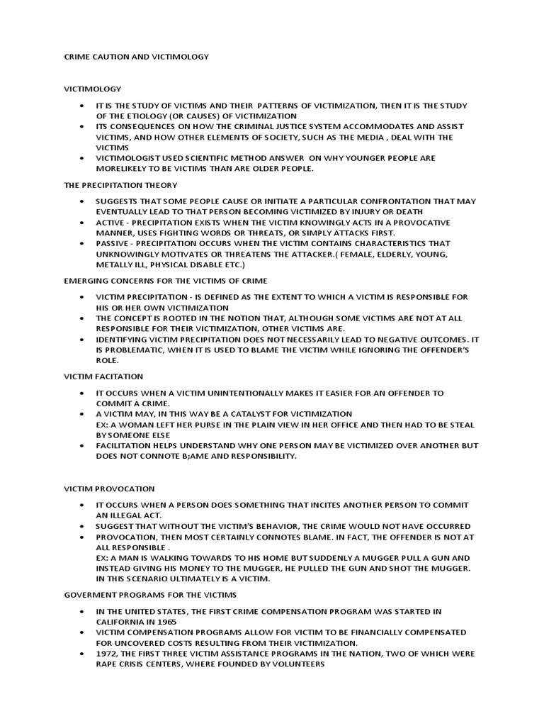 Theories of Victimization: Victim Precipitation, Facilitation, | Course ...