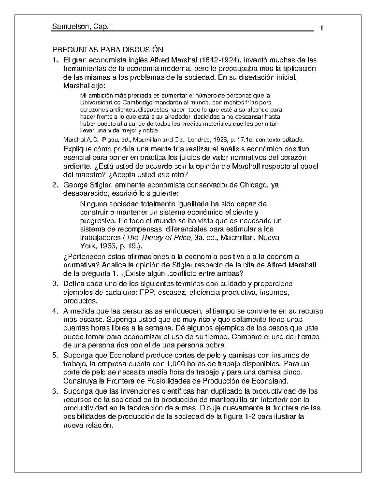 Ejercicios samuelson - PREGUNTAS PARA DISCUSIÓN El gran economista ...
