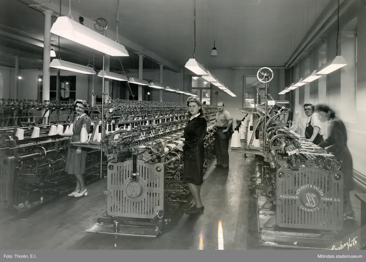 Kvinnor och män arbetar i Viktor Samuelsons fabrik "Strumpan", omkring ...