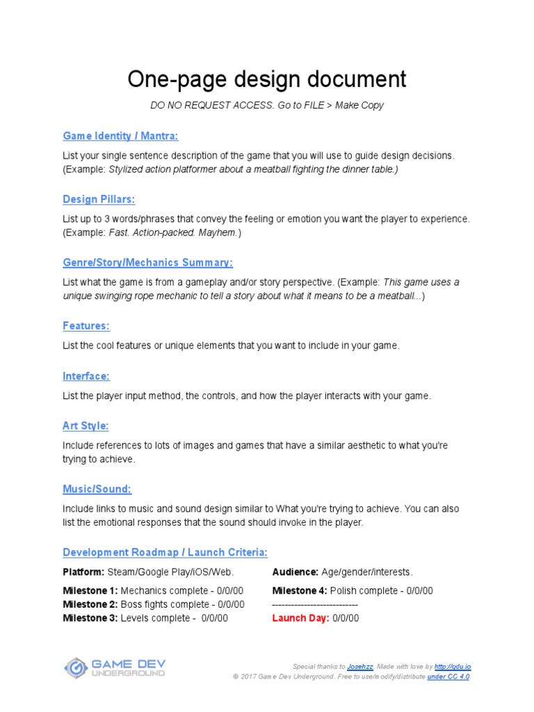 One-Page Game Design Document Template | Free Download | Gossian Blurs