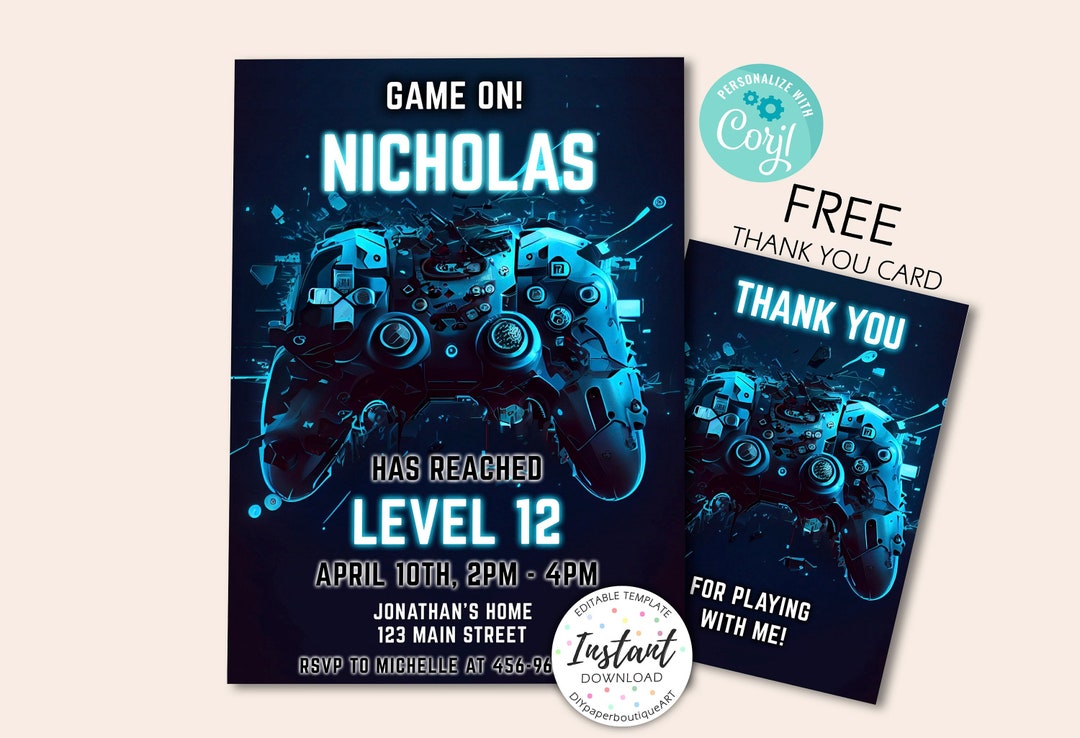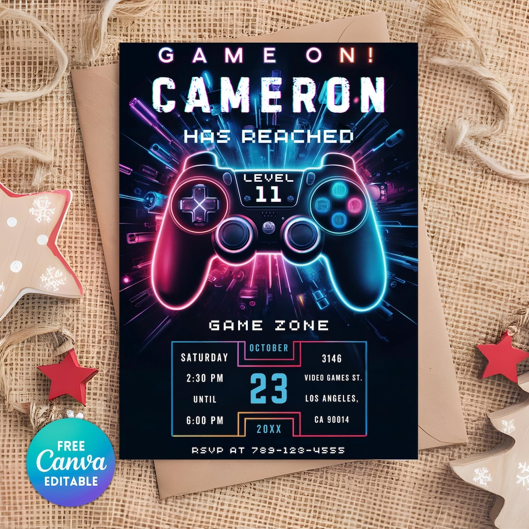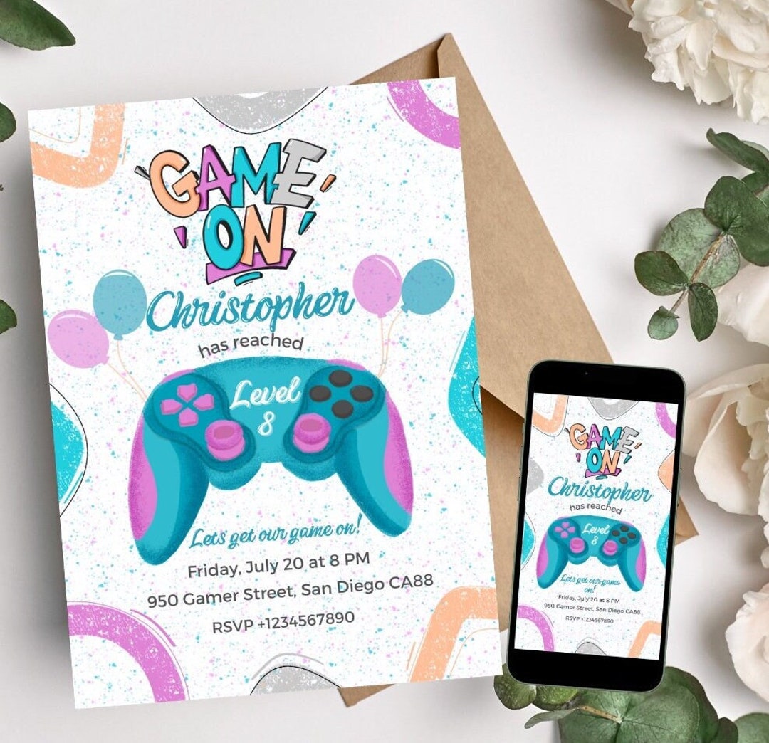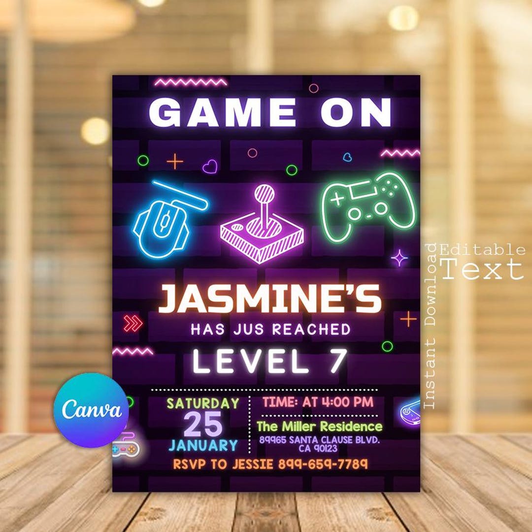 EDITABLE Video Game Party Invitation Gamer Birthday Invite - Etsy
