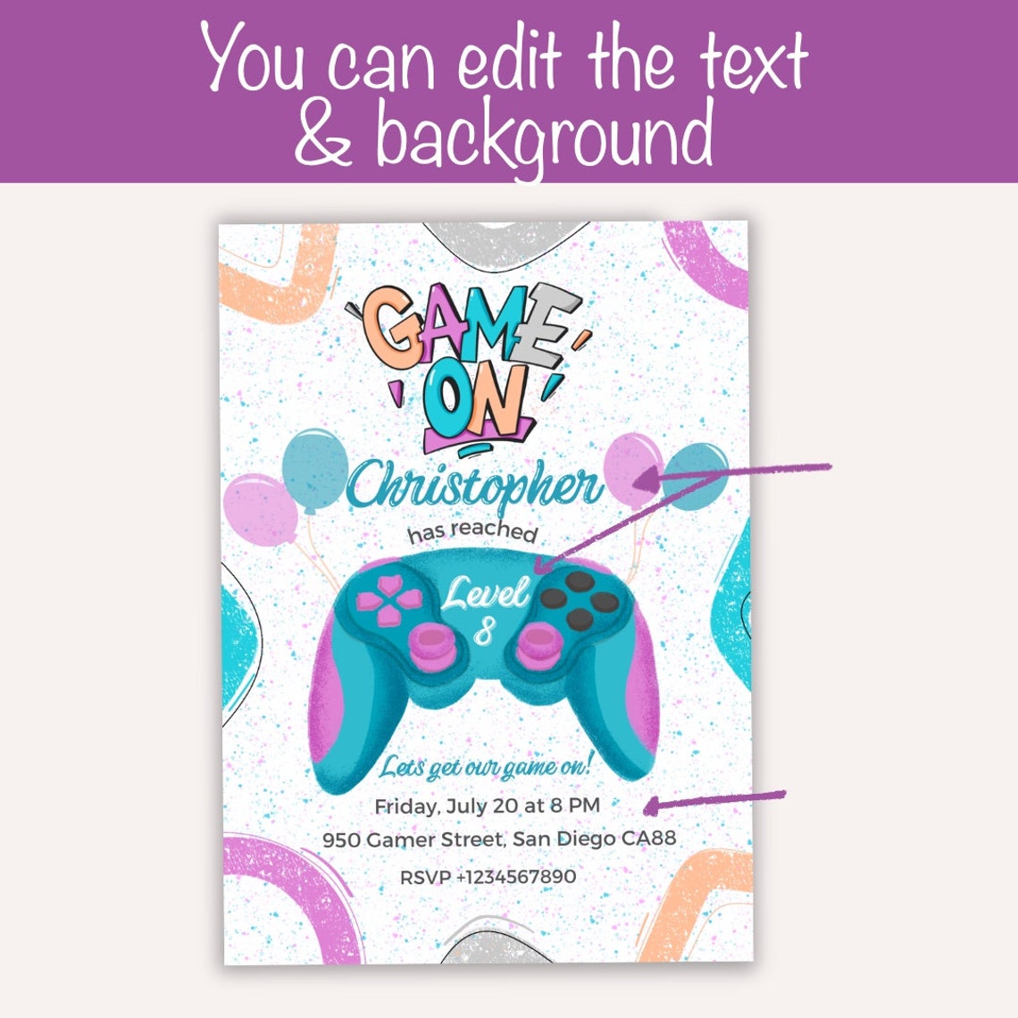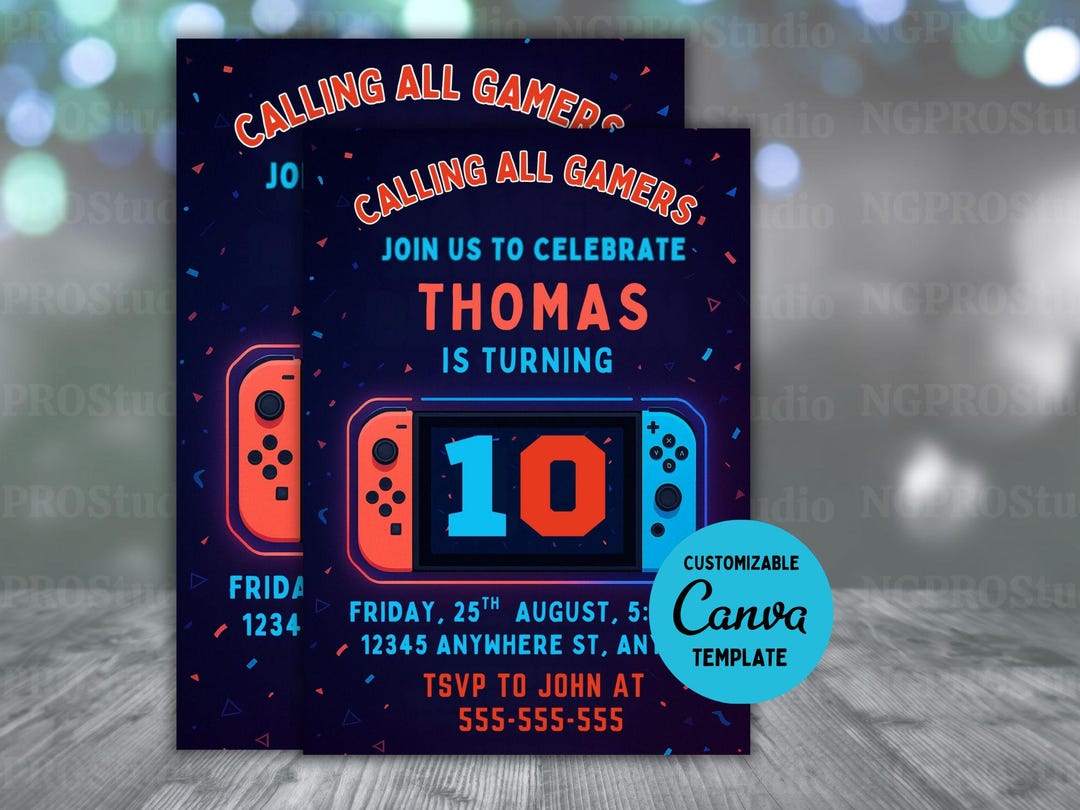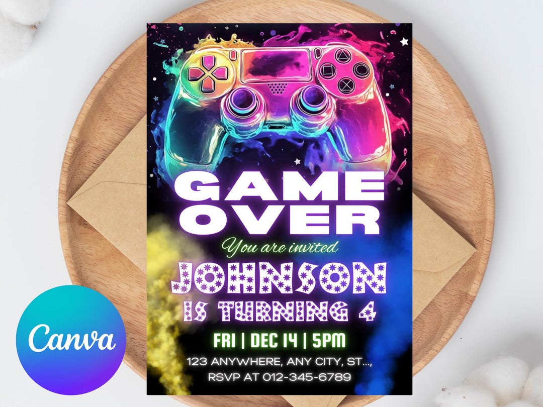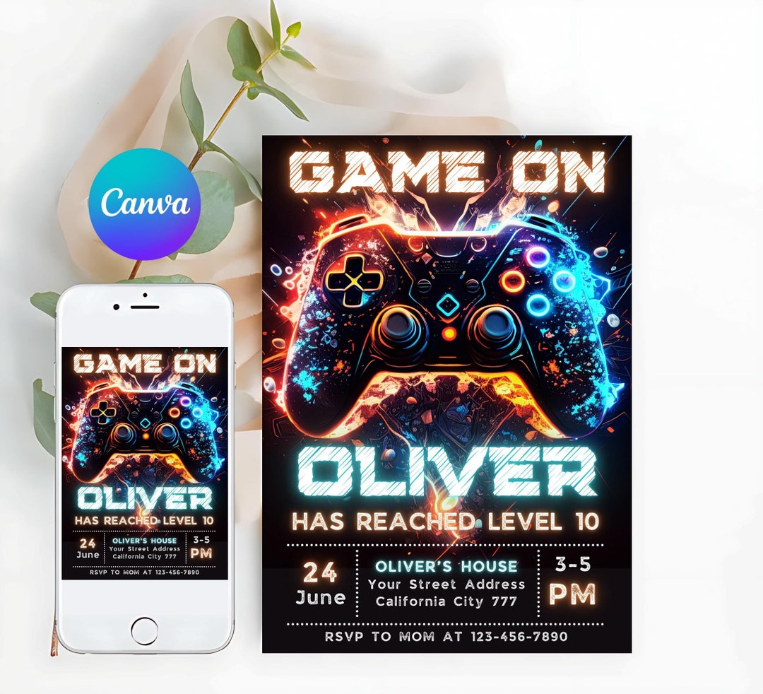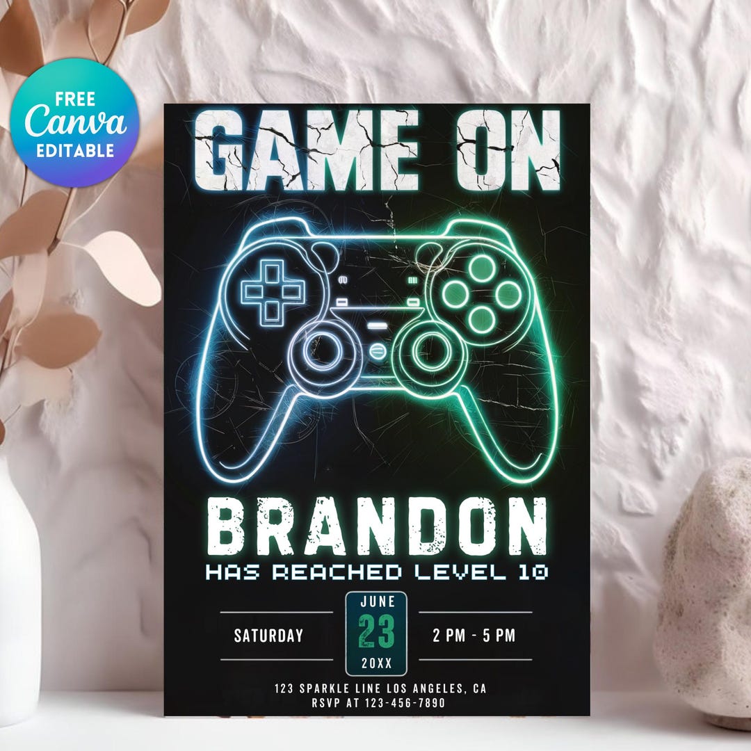 EDITABLE Video Game Party Invitation Gamer Birthday Invite - Etsy