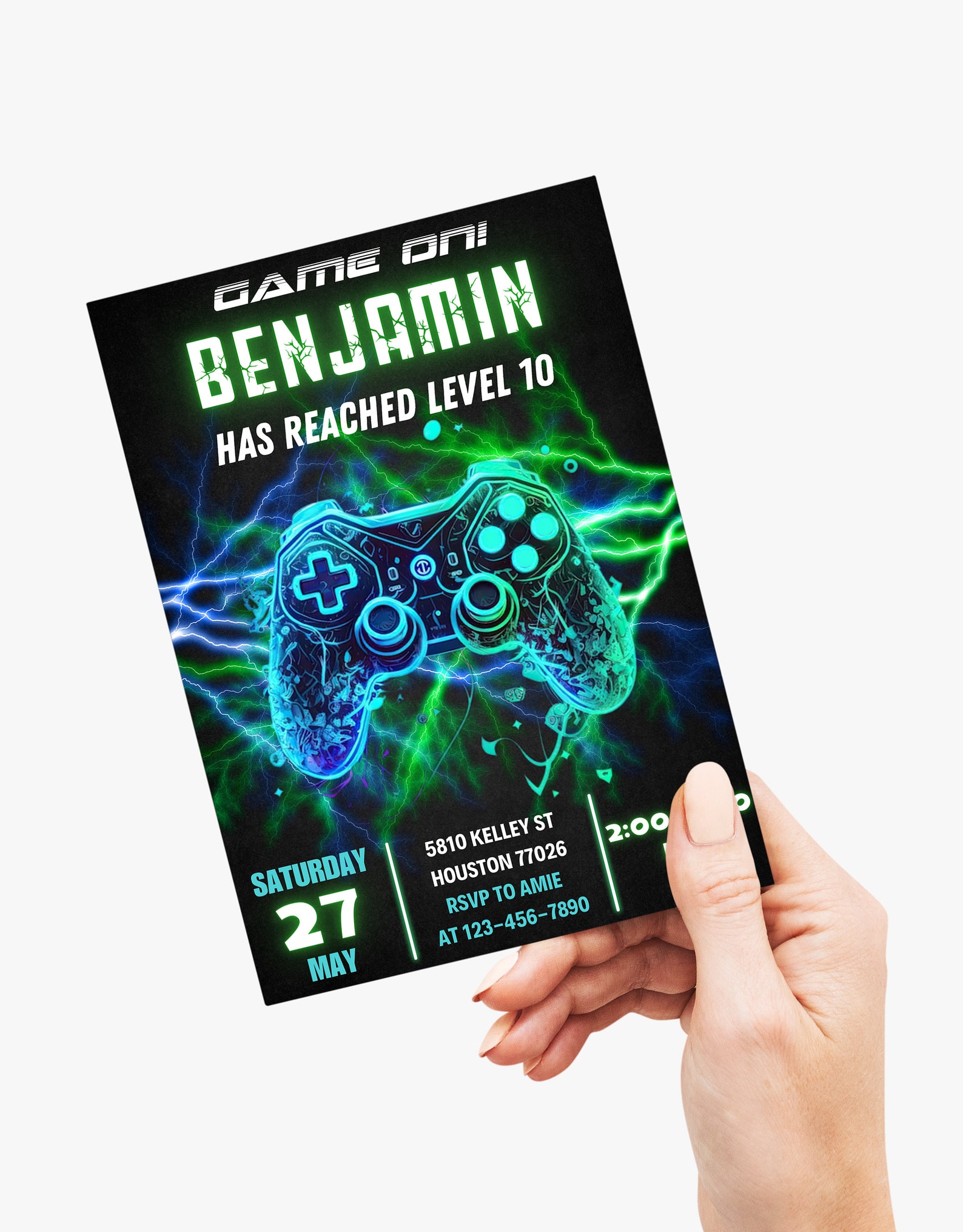 Editable Video Game Party Invitation, Neon Glow Boy Level up Birthday ...