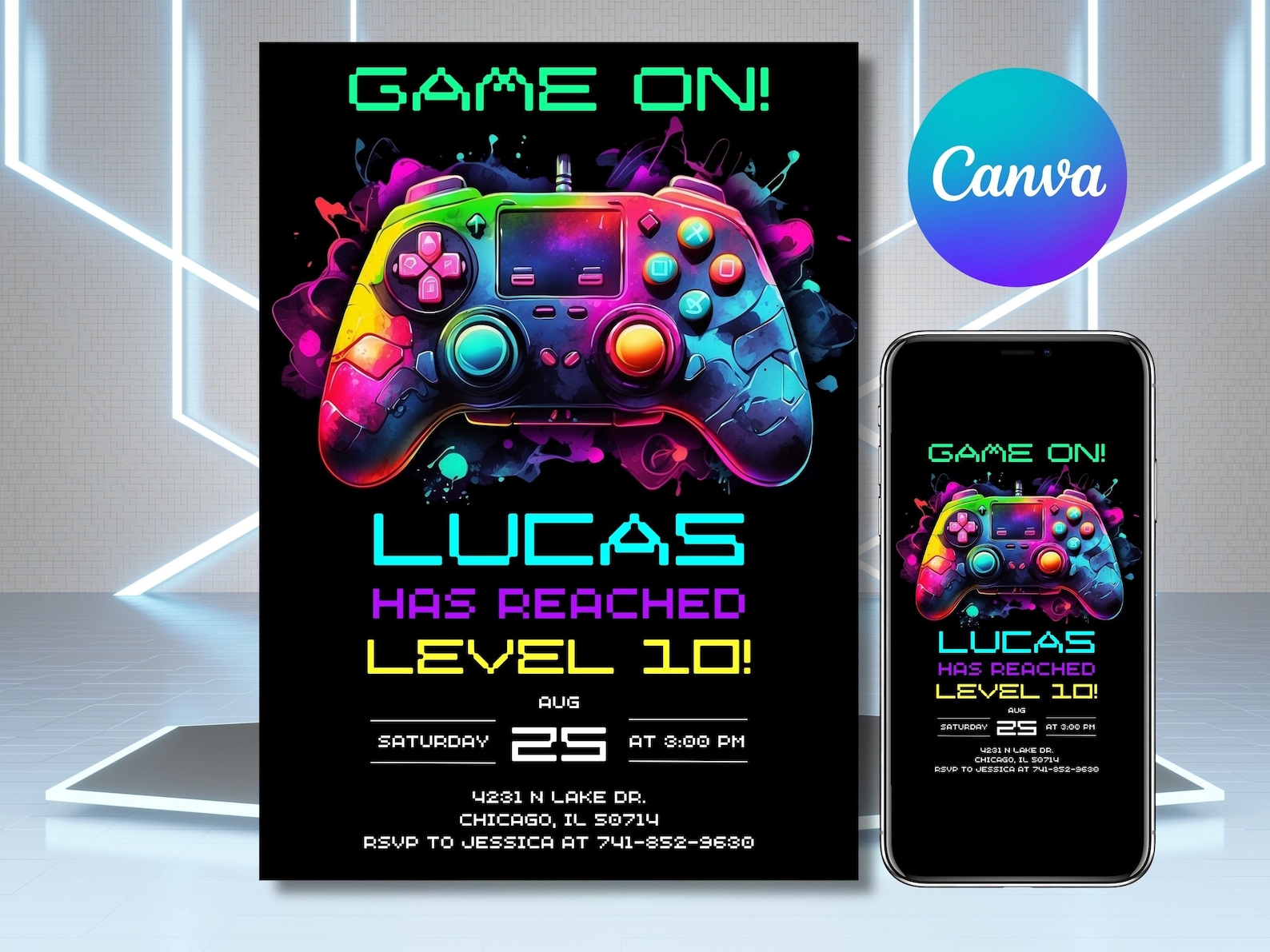 Editable Video Game Party Invitation, Video Game Invitation, Neon Glow ...