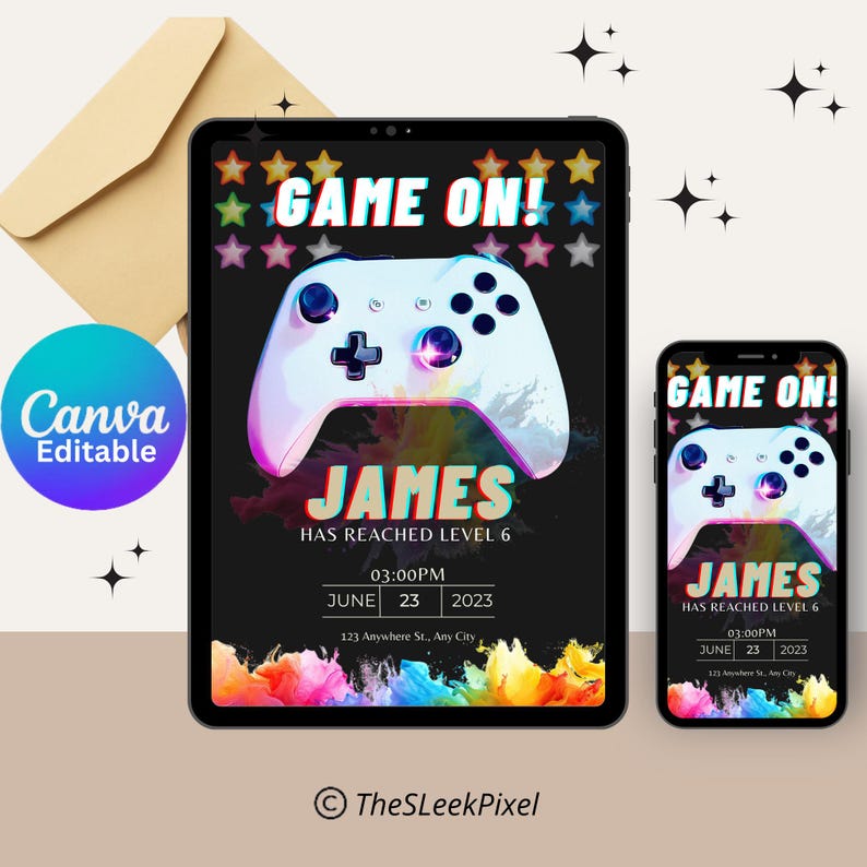 Video Games Invitation Template Editable