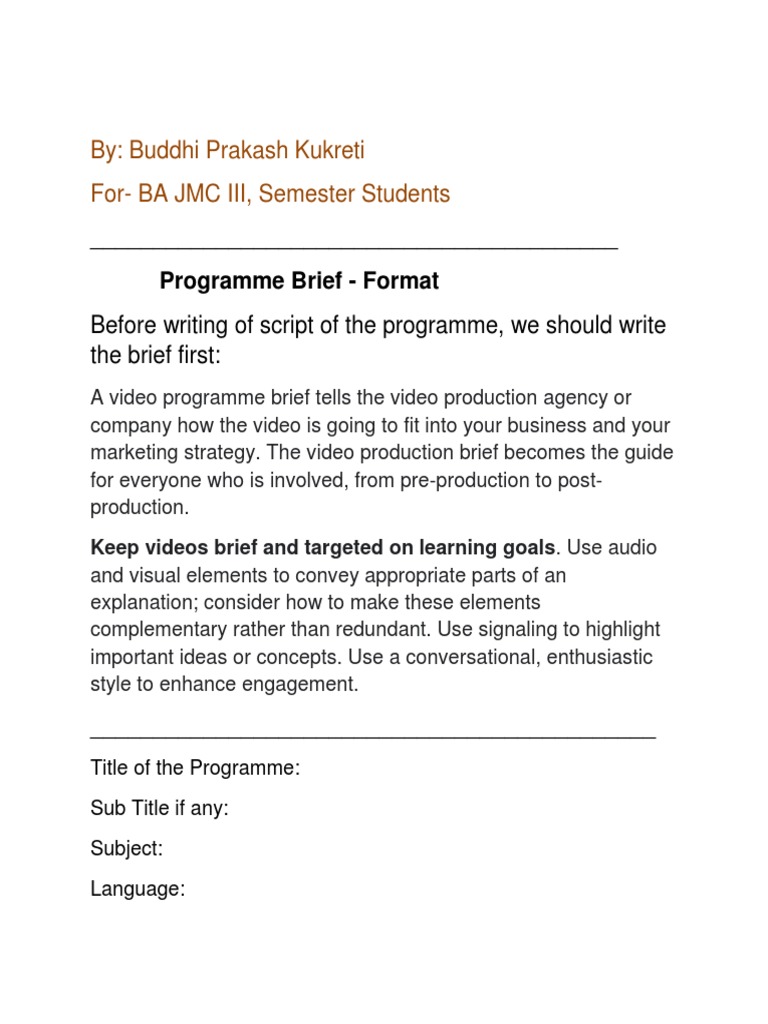 Programme Brief and Script Format of Video | PDF | Brand | Marketing
