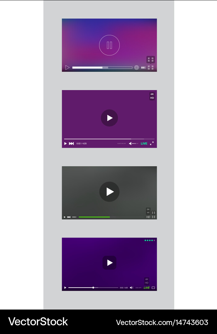 Video Player Window With Menu And Buttons Panel Vector Set Stock ...