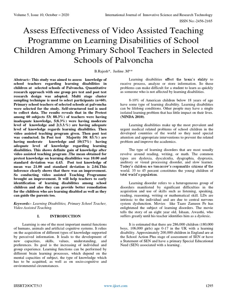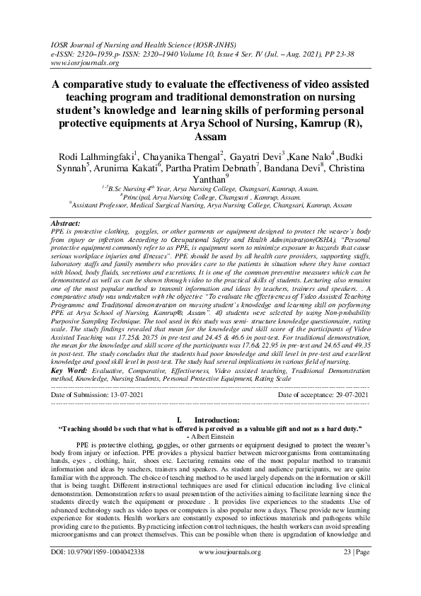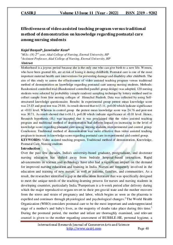 (PDF) A STUDY TO ASSESS THE EFFECTIVENESS OF VIDEO ASSISTED TEACHING ...