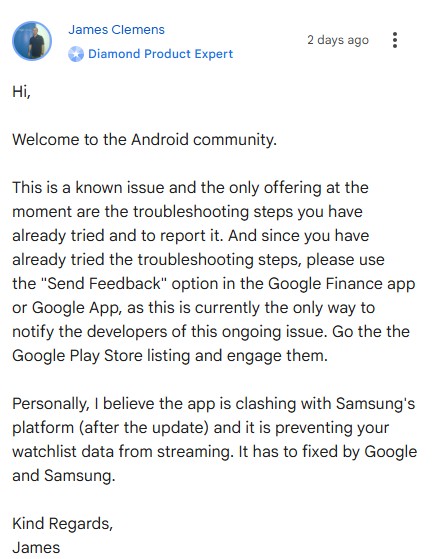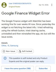 Google Finance Watchlist widget not updating? It's not just you ...