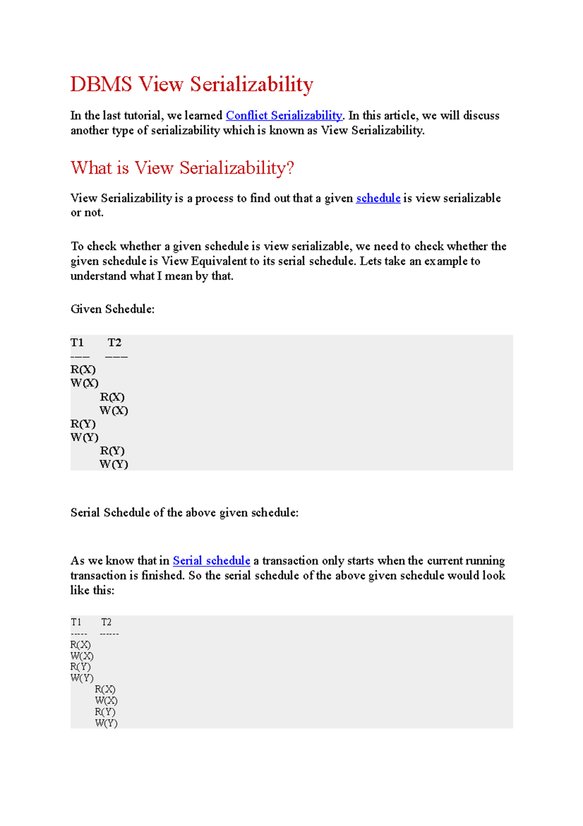 What Is View Serializable Schedule In DBMS? | A5THEORY