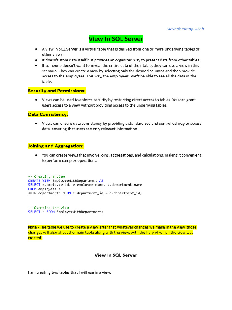 VIEWS IN SQL SERVER - Shreyas Shivanikar - Medium