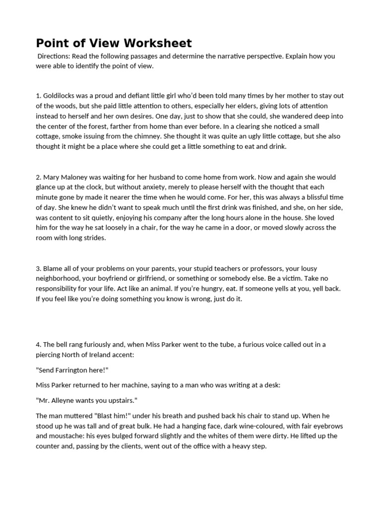 Points Of View Worksheet Identifying Part 1 at Mitch Moore blog