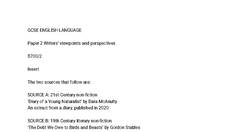 GCSE ENGLISH LANGUAGE Paper 2: Viewpoints & Perspectives Analysis - Studocu