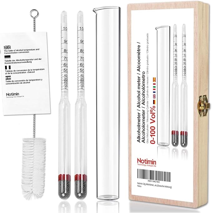 Notimin 2tlg Alkoholmeter Aräometer 0-100 Vol% Alkohol Vinometer + Glas ...