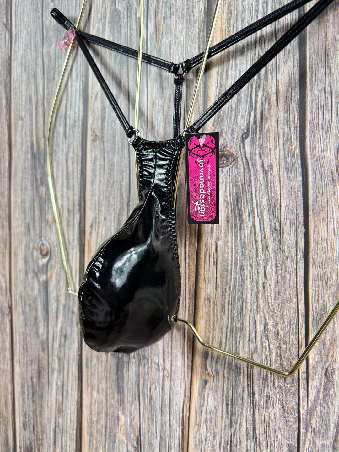 Jovanadesign String pour homme très étroit en vinyle noir brillant PVC ...