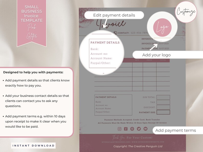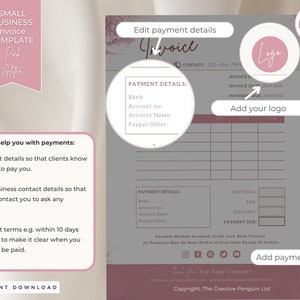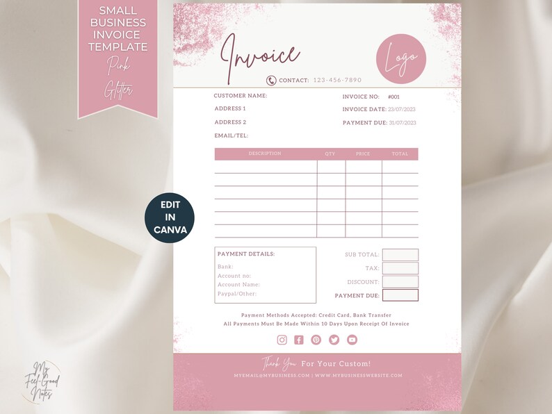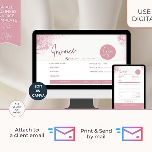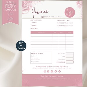 Business Service Invoice Template, Pink, Digital Canva Editable ...