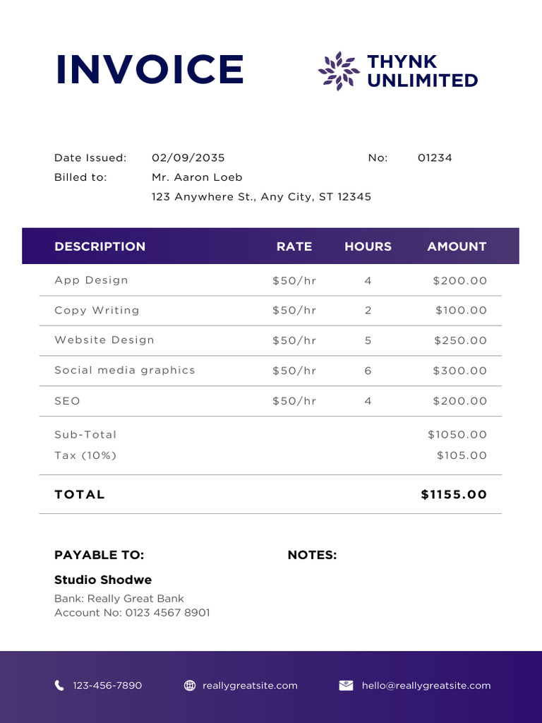 Purple White Simple Marketing Services Invoice Template - Venngage