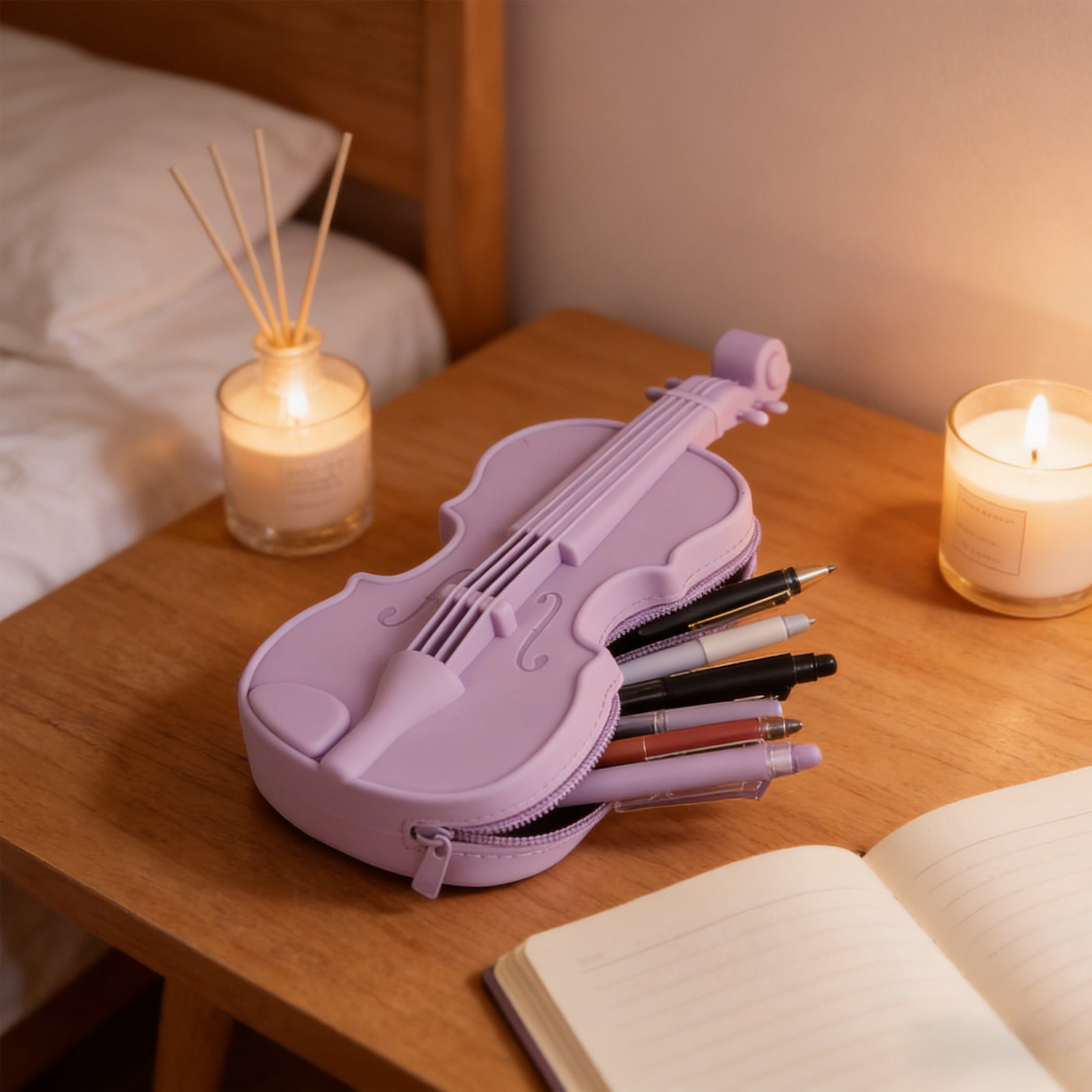 CaiYueKe Cute Violin Shaped Silicone Pencil Case, Large Capacity ...