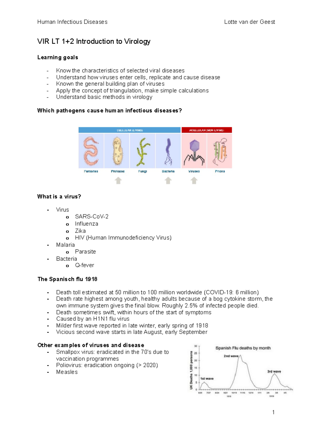 Lectures Human Infectious Diseases - VIR LT 1+2 Introduction to ...