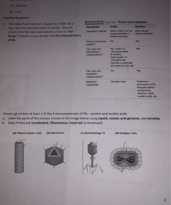 Solved 19. virulence 20. virus Practice Questions SUMMARY | Chegg.com