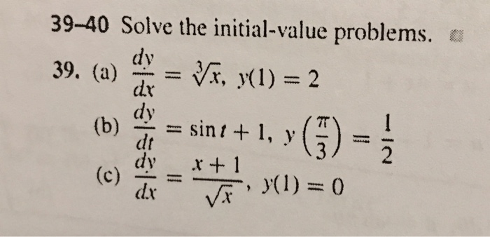 Solved 39-40 Solve the initial-value problems. - Vir, y(1) = | Chegg.com