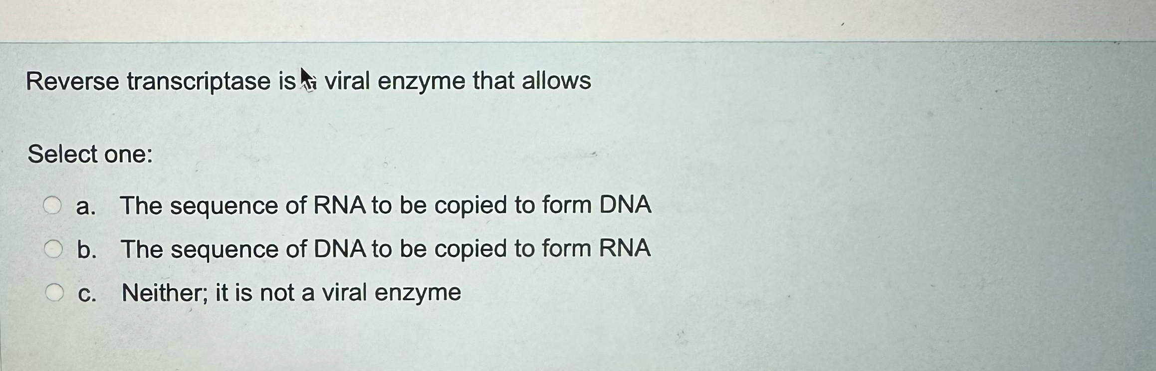 SOLVED: Question 4 The viral enzyme reverse transcriptase is used to ...