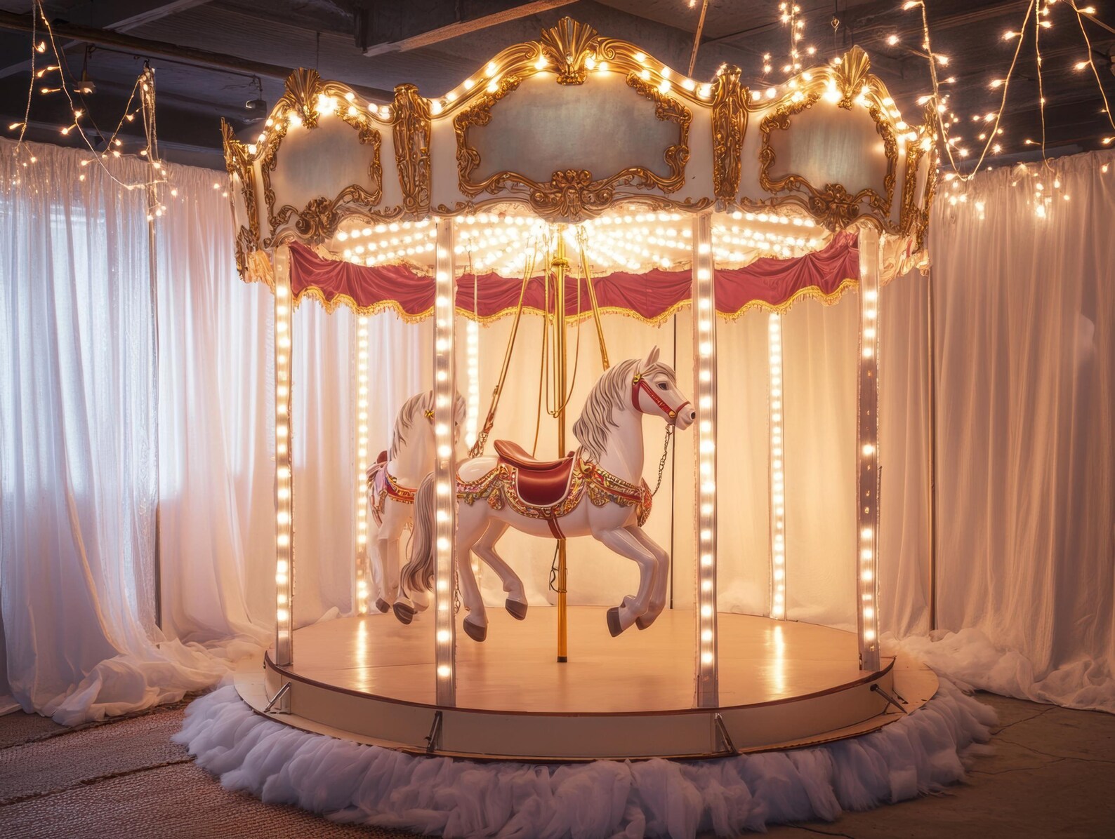 Carousel Digital Backdrop, Merry-go-round With Horse Virtual Background ...
