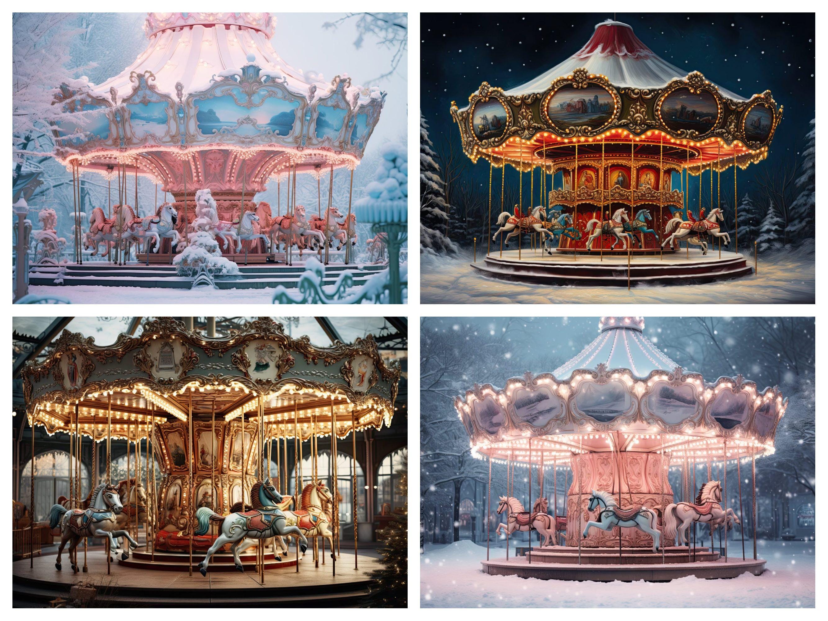 5 Winter Carousel Digital Backdrop, Christmas Snow Virtual Background ...