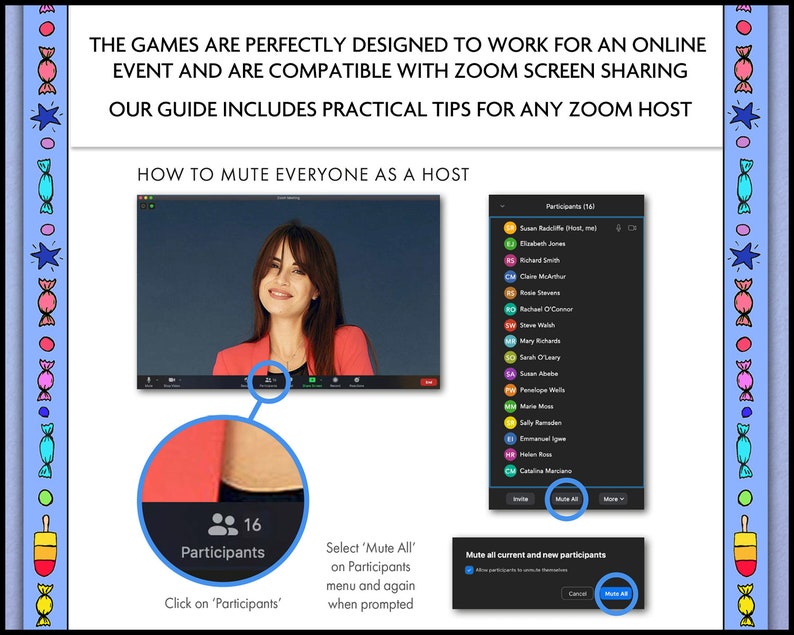 Children's Virtual Birthday Online Animated Games Party Pack Editable ...