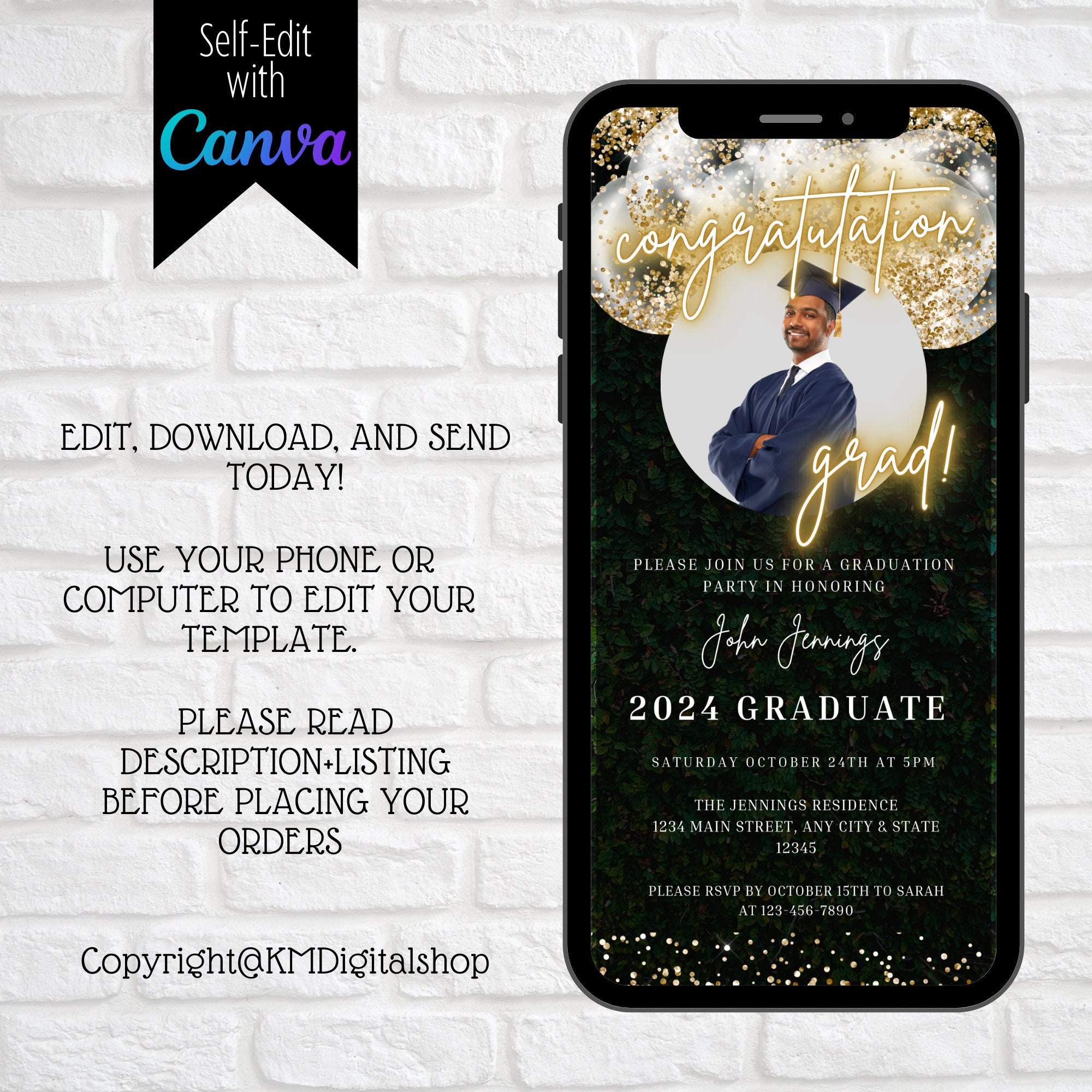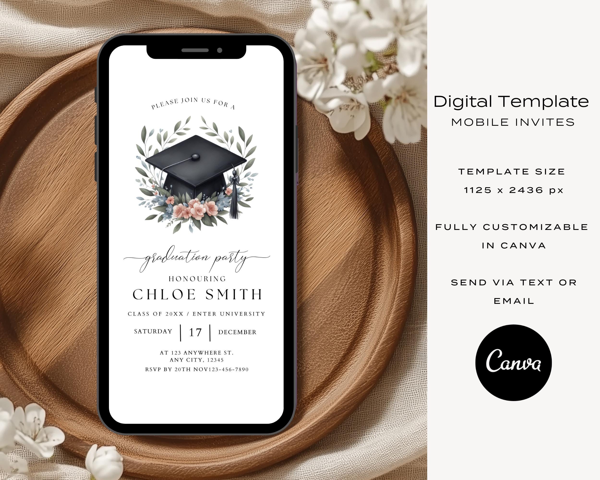 Digital Graduation Party Invitation to Customize and Send via Text or ...