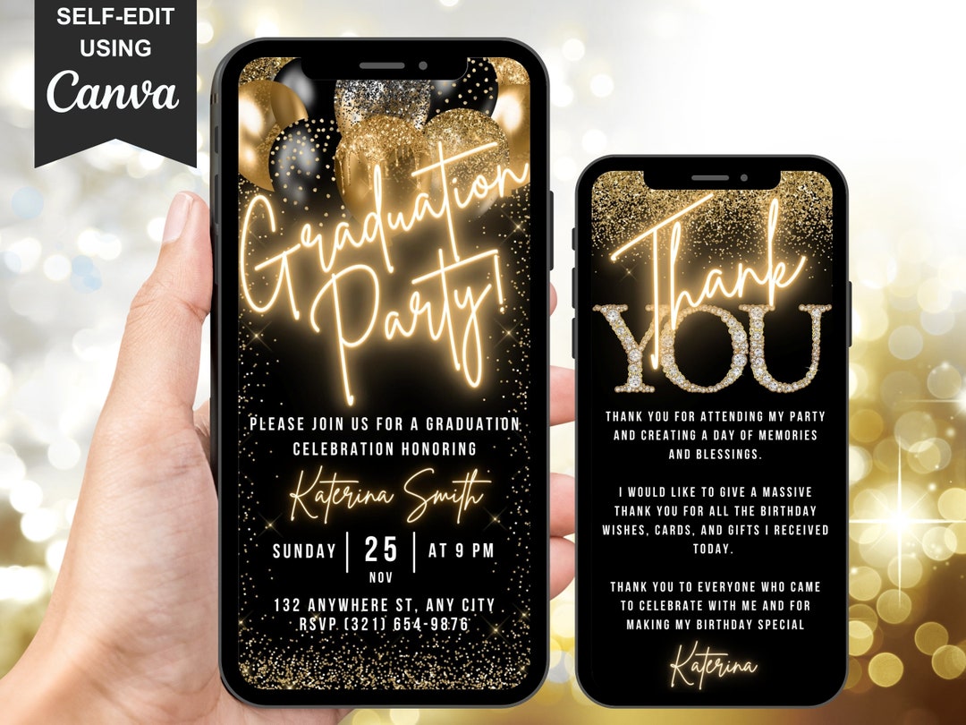 Modern Graduation Electronic Invitation, Editable Graduation Text ...