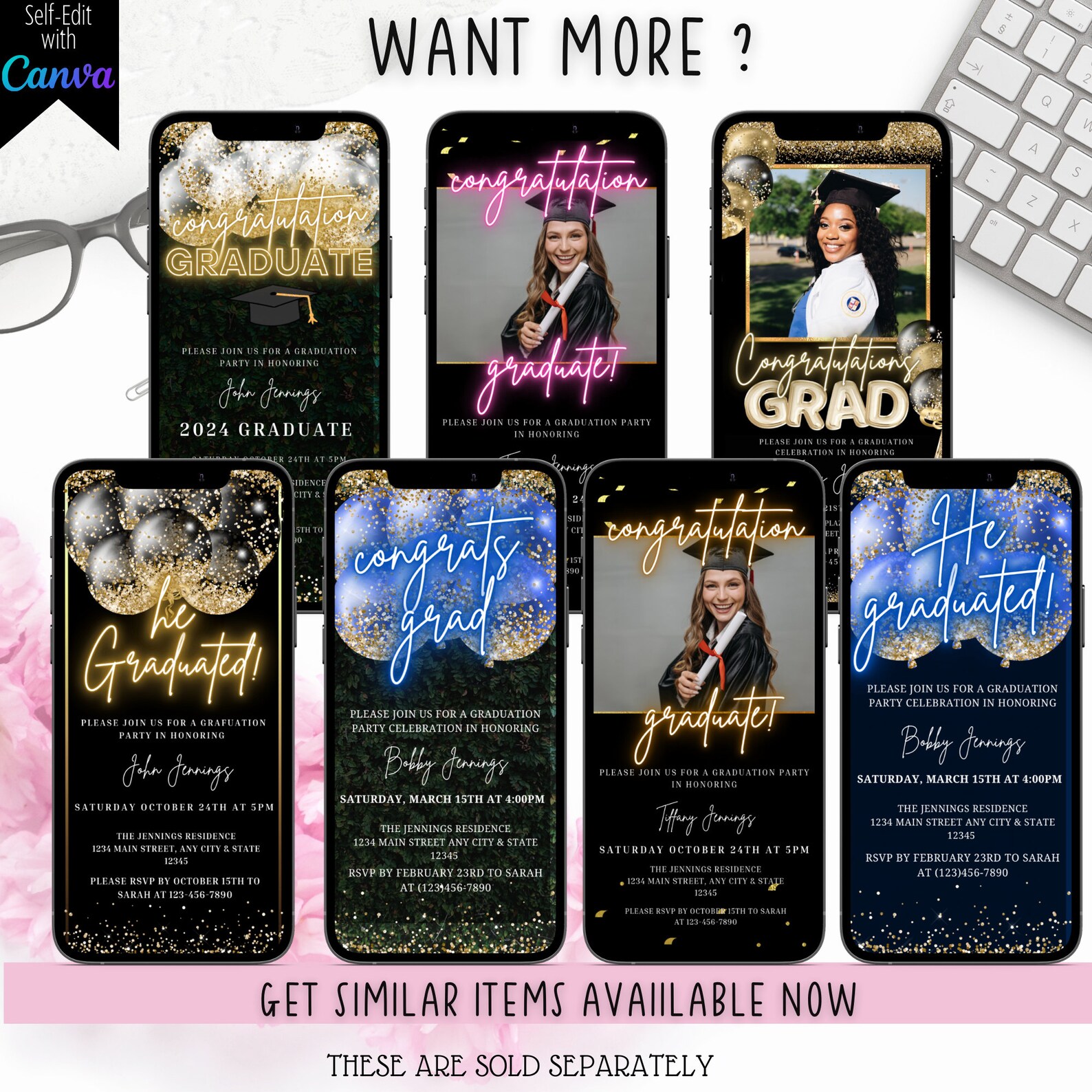 Digital Modern Graduation Party Photo Template Invitation, Phone Text ...