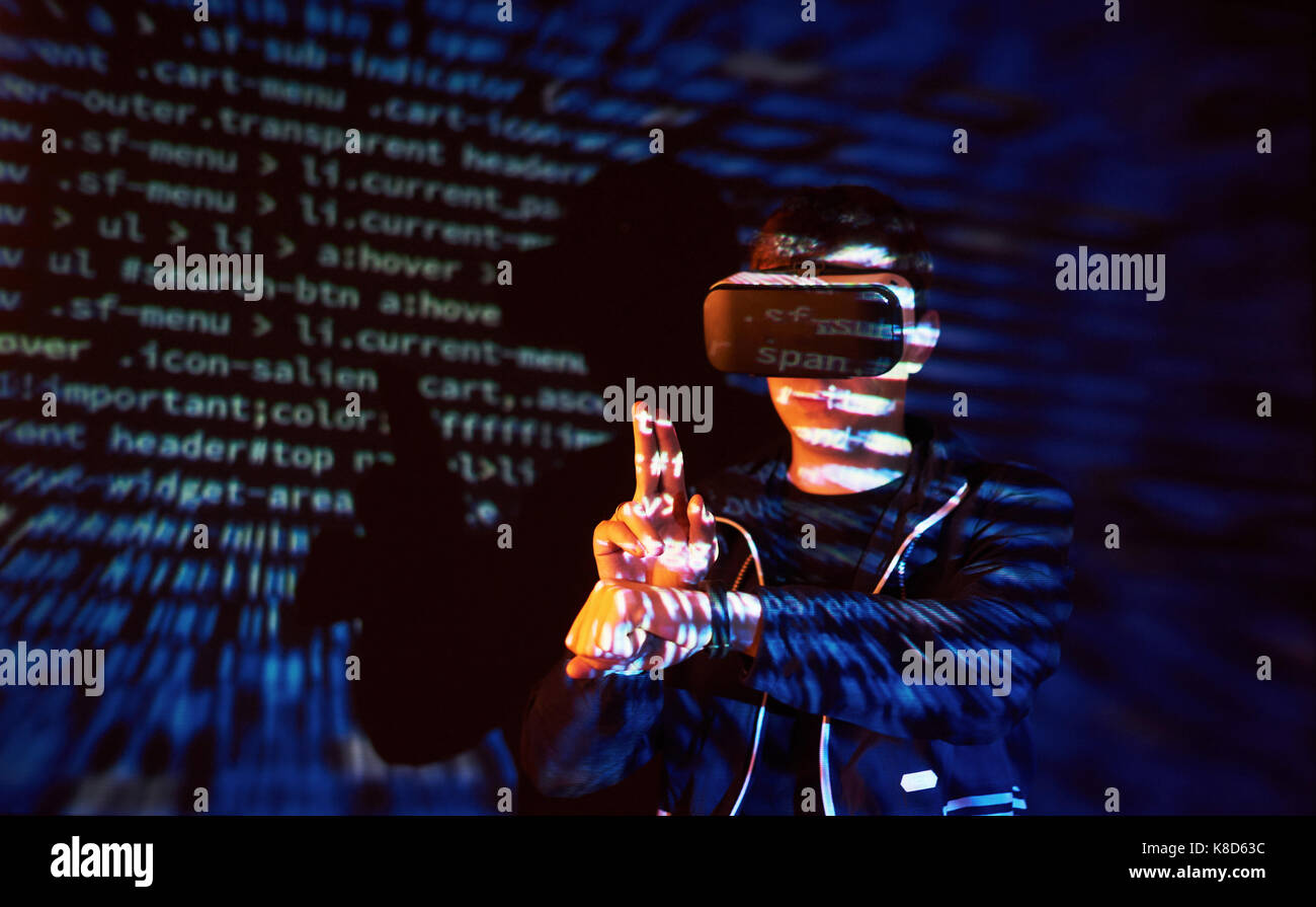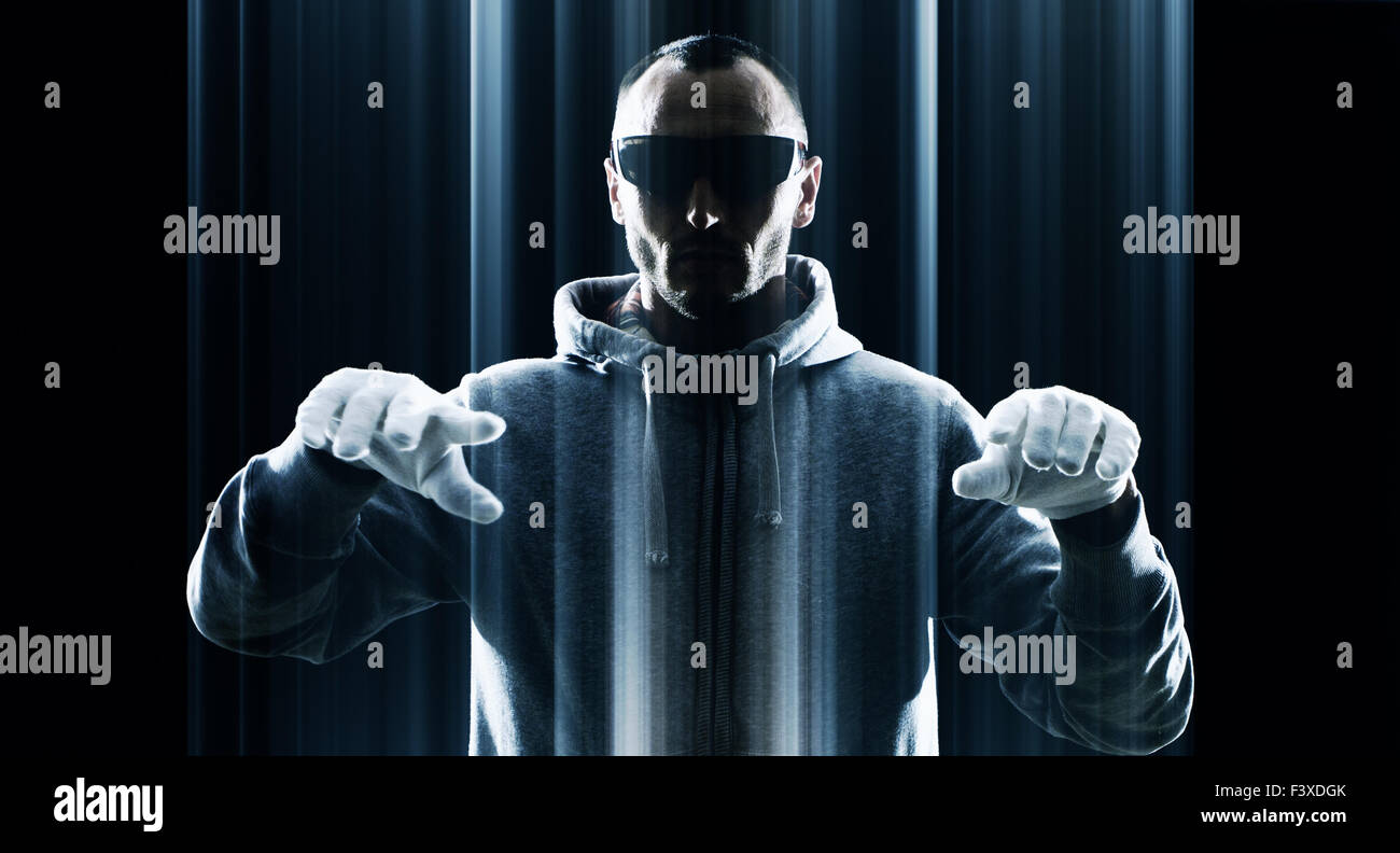 Cybercriminal in virtual reality glasses hacking and launching a ...