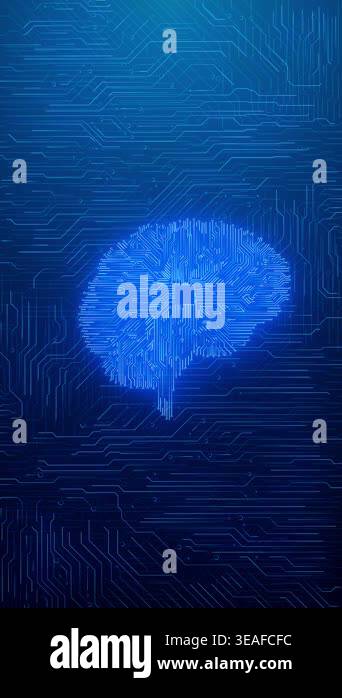 Human brain shaped circuit glowing neon blue, artificial intelligence ...