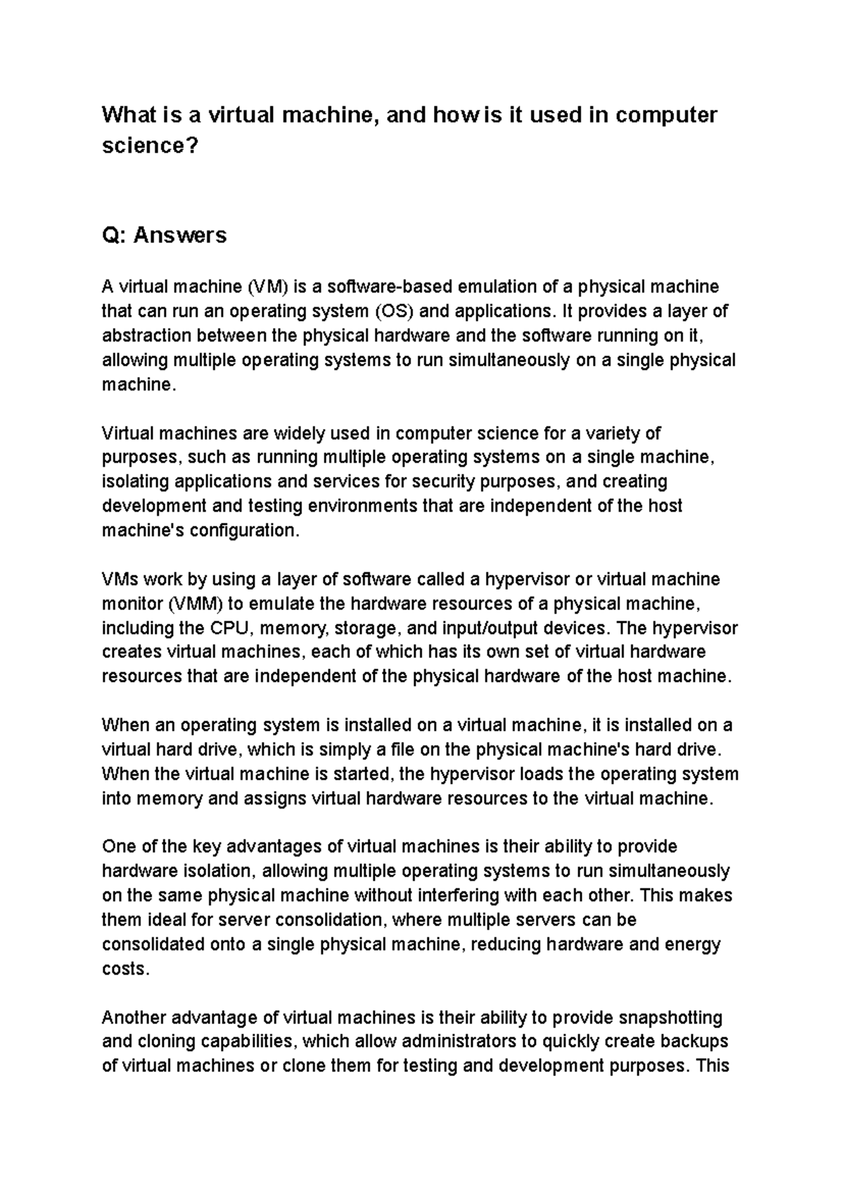 What is a virtual machine, and how is it used in computer science ...