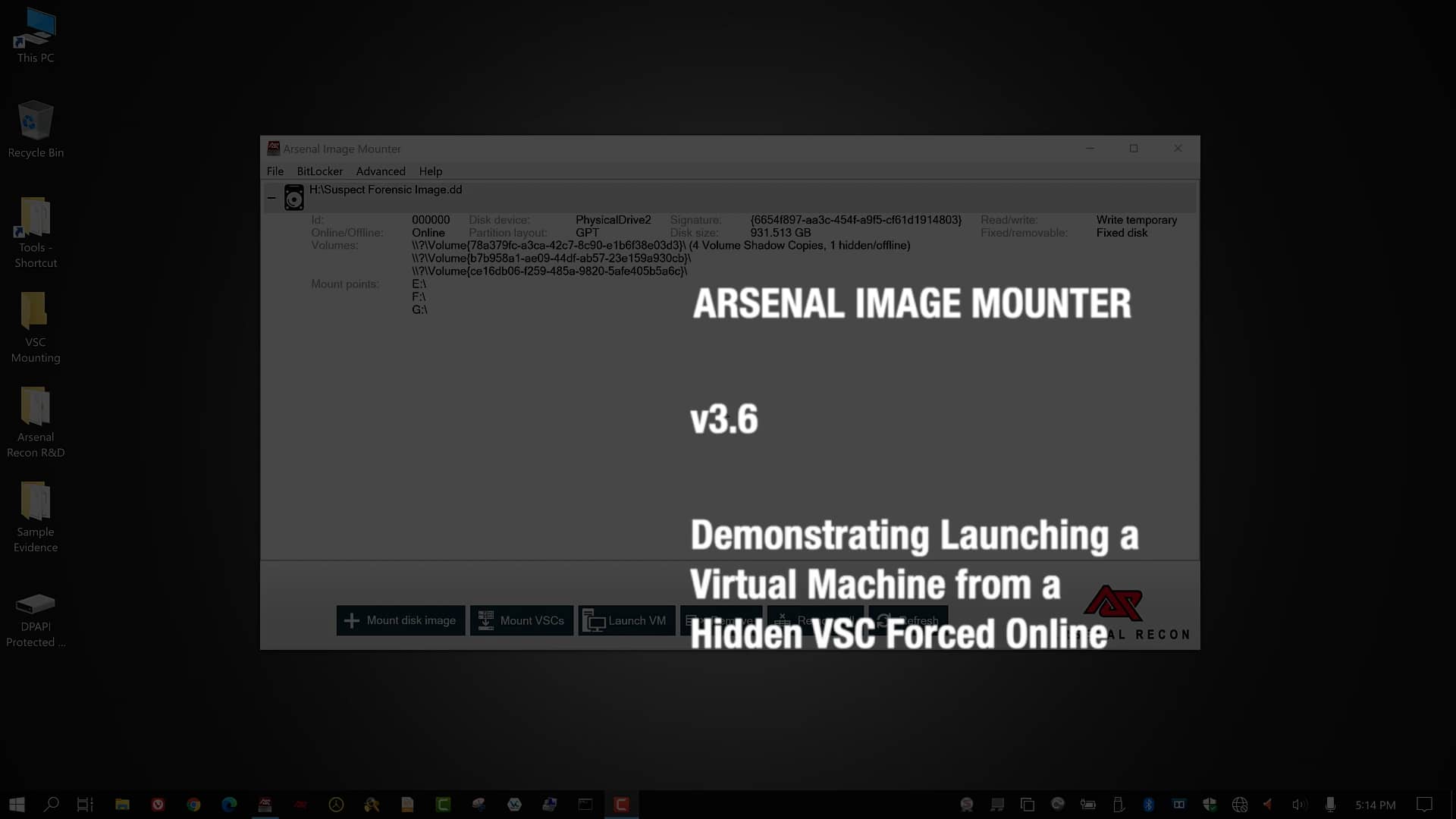 Arsenal Image Mounter v3.6 - Demonstrating Launching a Virtual Machine ...