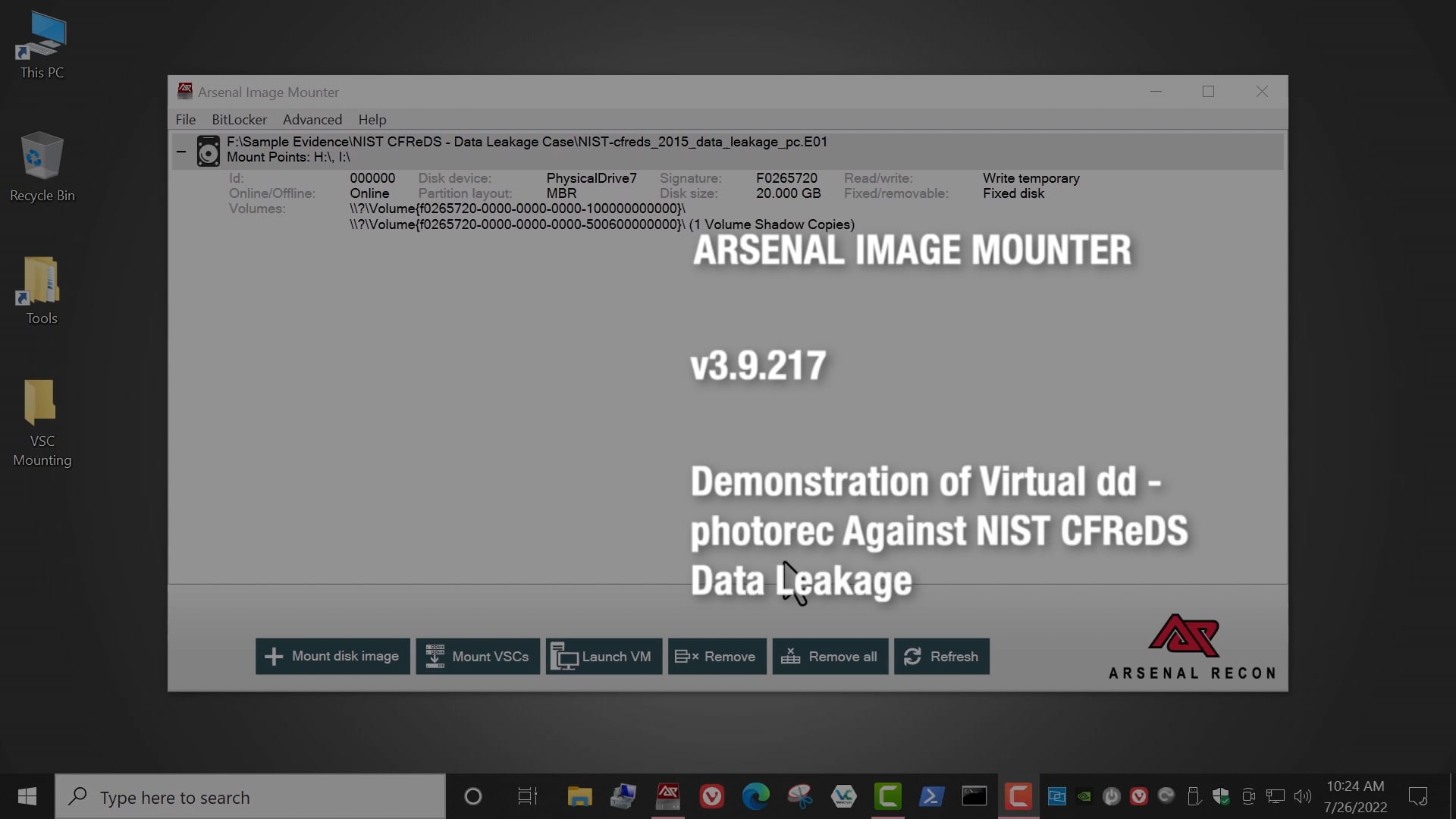 Arsenal Image Mounter v3.9.217 - Virtual dd - photorec Against NIST ...