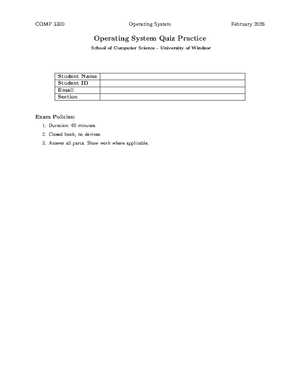 COMP 3300 Operating System Quiz Practice - February 2026 - Studocu