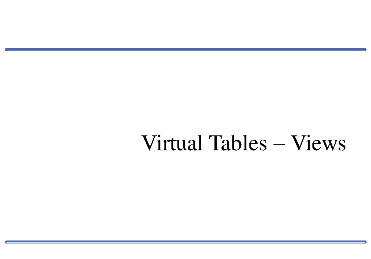 7-1 Views - Virtual Tables – Views Virtual Tables Output of a ...